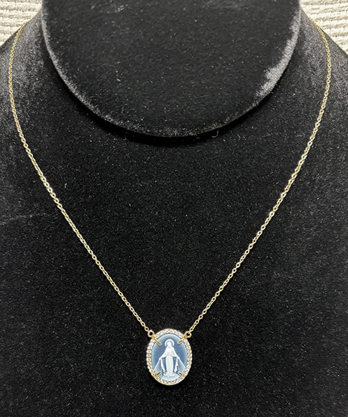 Gold & Blue Agate Miraculous Medal Necklace